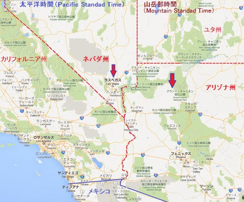 理由はもうおわかりだと思いますが、ラスベガスのあるネバダ州は夏時間を採用していますので、3月の第2日曜日に時計を1時間進めますが、グランドキャニオンのあるアリゾナ州は夏時間を採用していないため、時計を進めることはしません。