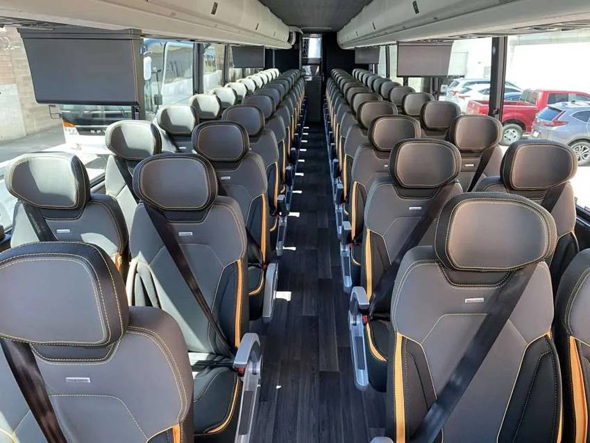 デラックスな大型バスは乗り心地も良く、車内に無料Wi-Fiやトイレも完備しています。